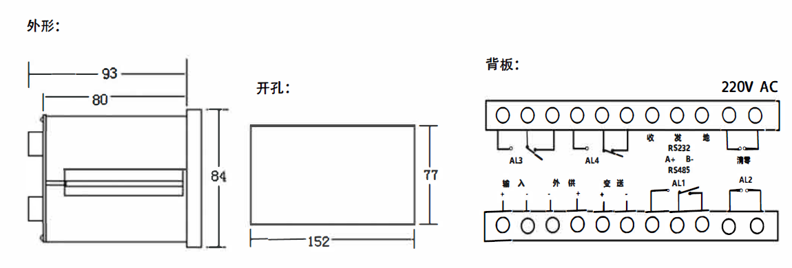 * 13.工作電源:220V AC供電的儀表:100VAC~245VAC,功耗小于7VA