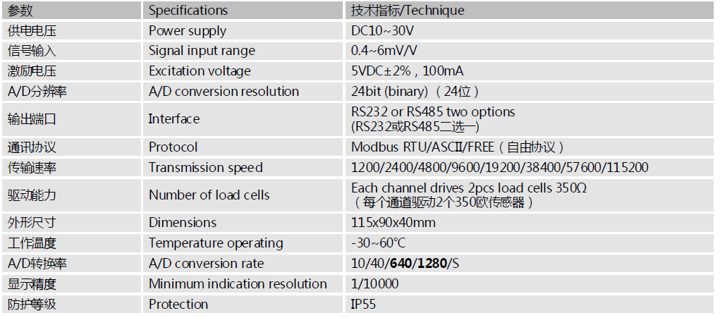 產(chǎn)品特點描述 1.性價比高,多種數(shù)字濾波。 2.通信方式RS232或RS485二選一。 3.可通過手持終端標定和修改參數(shù)。 4.6路獨立通道。