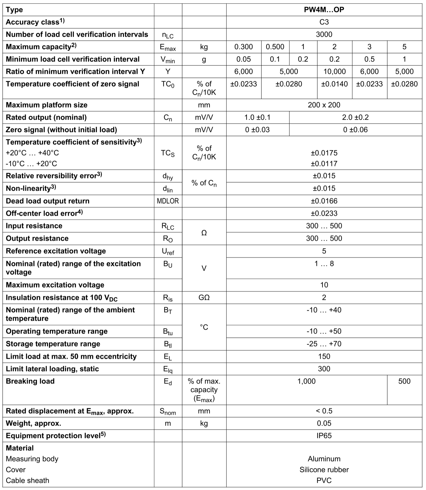 PW4M 和 PW4M-OP 高精度單點(diǎn)稱重傳感器: 量程 300 g 到 5 kg