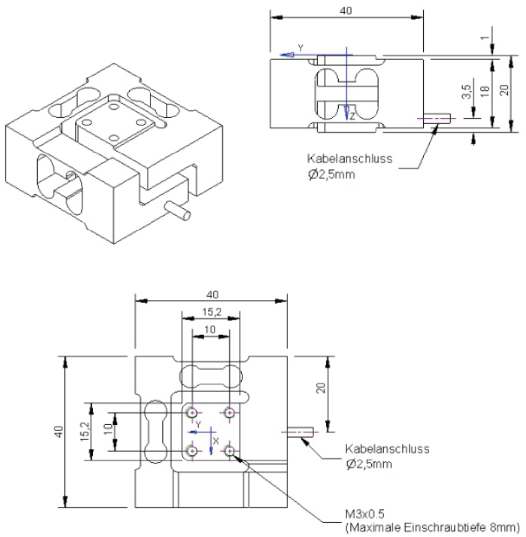 K3D40 三分量力傳感器:量程xyz:2N,10N,20N,50N
