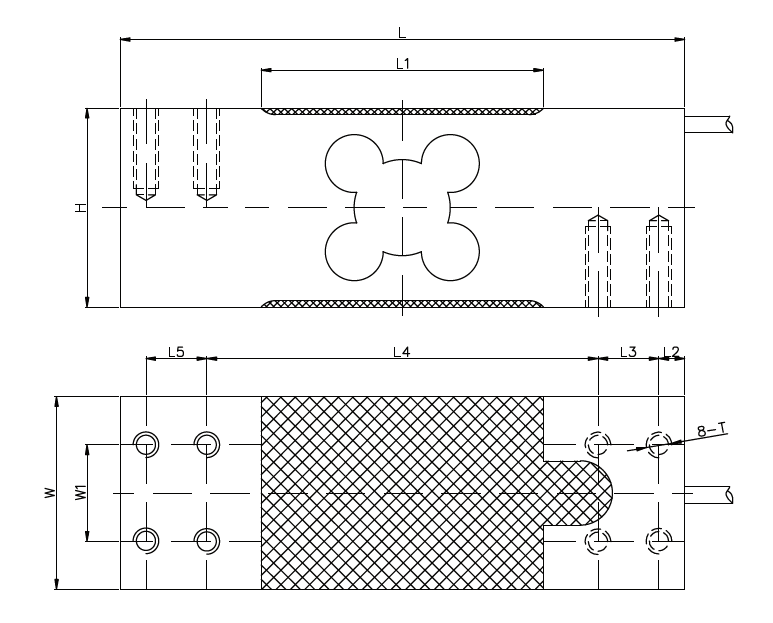 量程(kg/mm) | L | L1 | L2 | L3 | L4 | L5 | W | W1 | H | T |