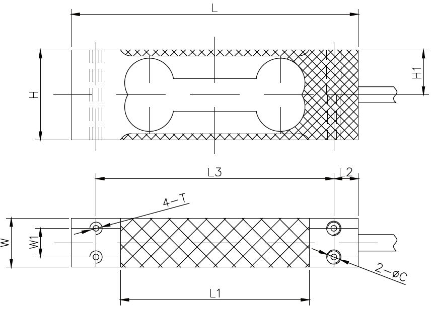 量程(Kg/mm) | φC | L | L1 | L2 | L3 | W | W1 | H | H1 | T |