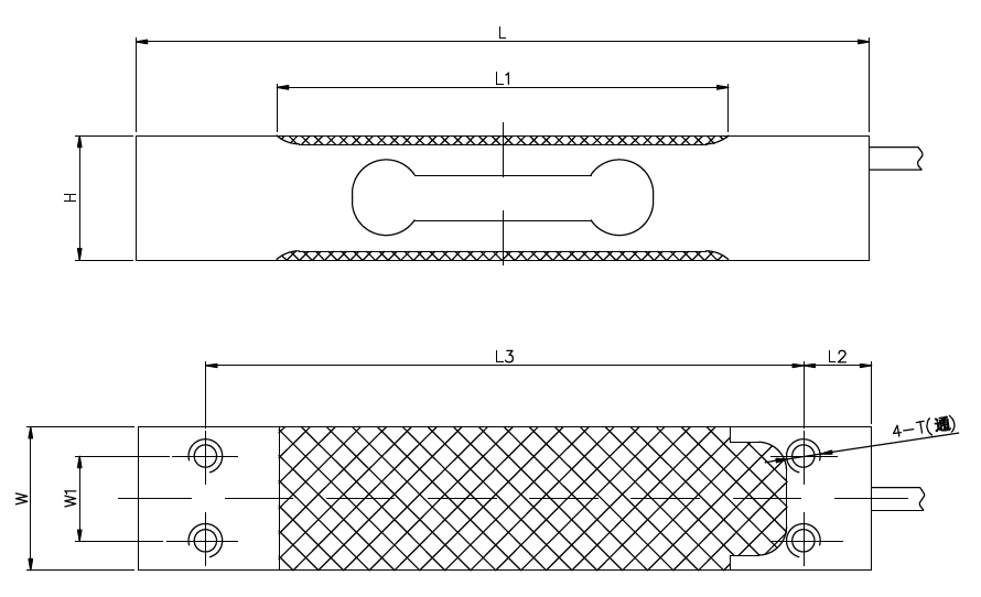 量程(kg/mm) | L | L1 | L2 | L3 | W | W1 | H | T |