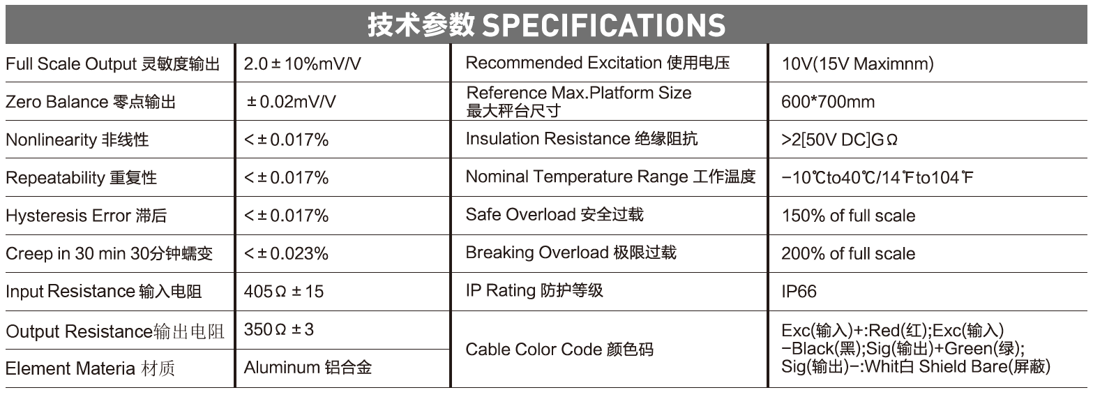 可滿足60-500kg范圍內(nèi)的稱重 適用于工業(yè)稱重系統(tǒng)