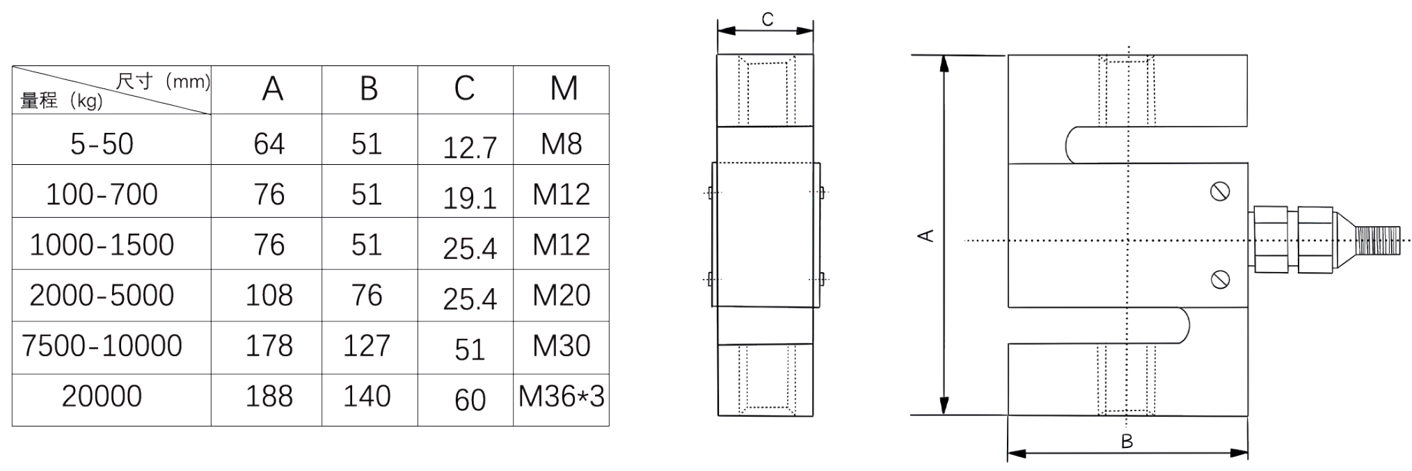 5-50;100-700;1000-20000kg |